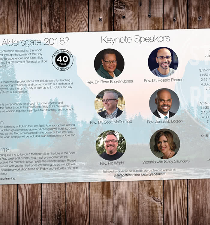 We used several images from unsplash.com to get just the look the client wanted, and created a conference theme logo that could be used on all the conference branding. Each brochure had to also be a mailer, and contain important conference information such as speakers and schedule. The size of each piece had to fall into the U.S. Postal guidelines for a self mailer. Overall the client loved the matching brochures.