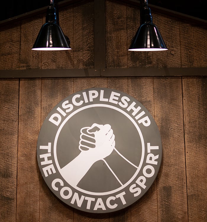 We designed and built a wooden stage background complete with barn lights that could be broken down and trucked to the venue and then reassembled. The client then worked with a few local people to get access to some racing and sports elements to dress the stage with.